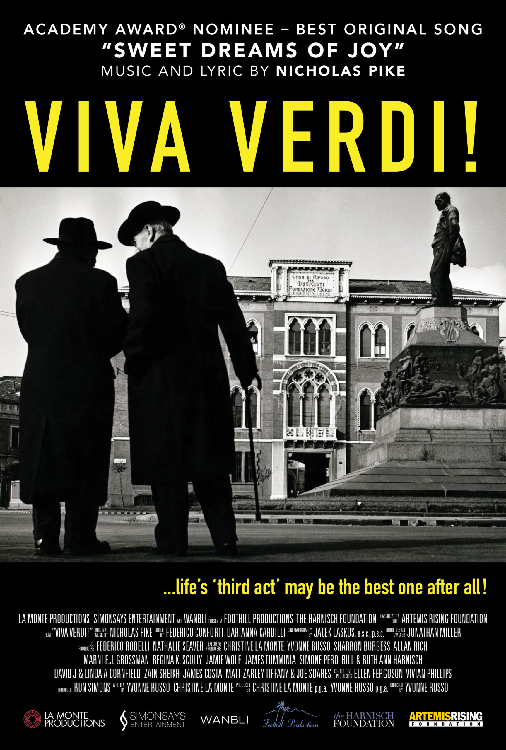 Poster and website design for VIVA VERDI!, documentary feature directed by Yvonne Russo, produced by Christine La Monte. In 2026, VIVA VERDI! was nominated the Academy Award® for Best Original Song, “Sweet Dreams of Joy” composed by Nicholas Pike.